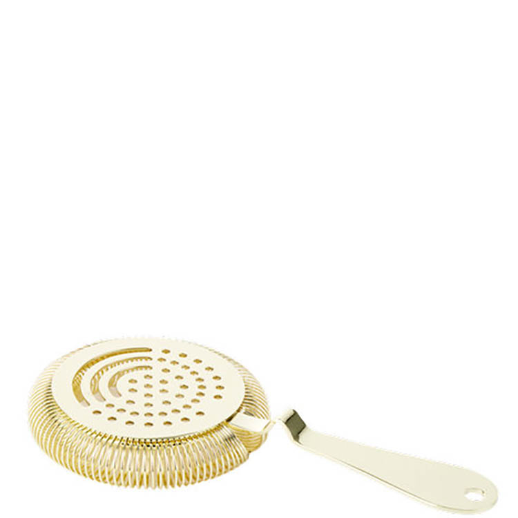 Premium Strainer Gold 185x95x19mm. Used in conjunction with shaker tins and mixing glasses, we offer classic two-pronged strainers that you’re familiar with as well as modern designed and functionally led strainers, giving you a choice for finer strains or modern “throwing” style strainers that have become the bar tenders’ choice in recent years.