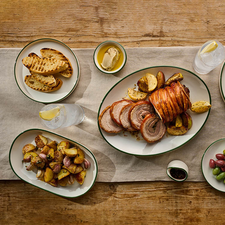 Finished with a soft, earthy green band, Modest Green brings a fresh, natural accent to the table, perfect for elevating seasonal dishes with understated character. Dishwasher safe, Lifetime Edge Chip Gaurentee, Microwave safe.