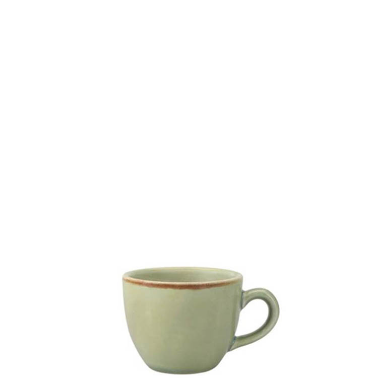 Enjoy a perfectly sized serving of coffee with the Oliva Bowl Shape Coffee Cup. With a 90 cc capacity, this cup is ideal for espresso or small cappuccinos. Its olive-green tone and terracotta-edged rim bring a warm natural aesthetic to every cup. The bowl shape allows for comfortable holding and a refined sensory experience.