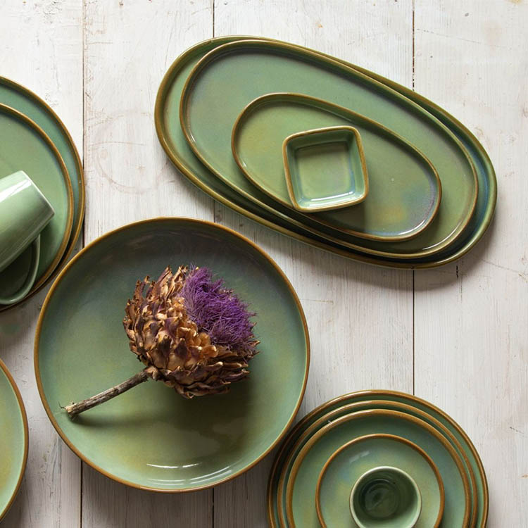 Immerse yourself in the organic allure of Pioli’s Oliva Collection. This range of tableware celebrates the rustic beauty of nature with each piece showcasing soothing olive greens and earthy tones edged with a subtle terracotta-hued rim.