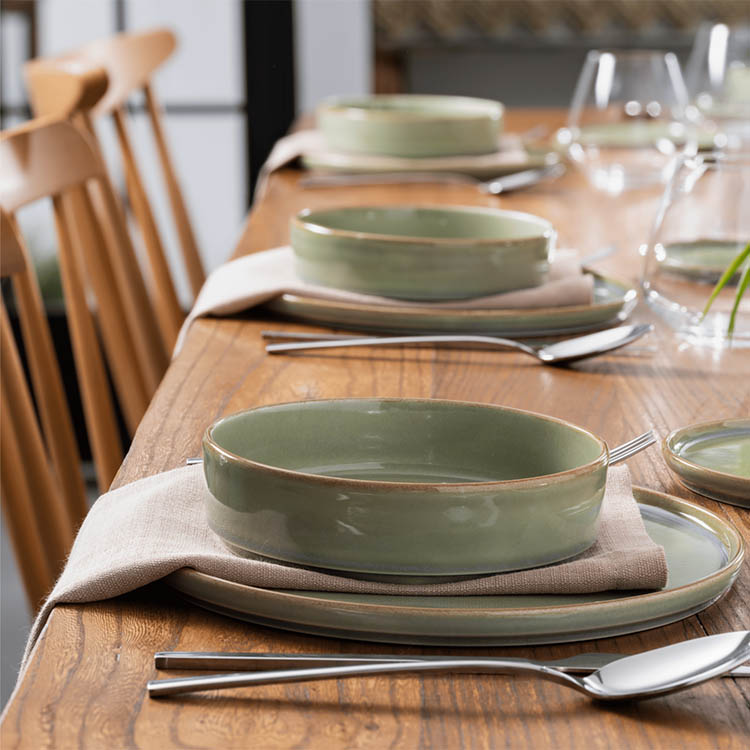 The collection’s artisanal quality is highlighted by gentle natural irregularities in its forms reminiscent of handcrafted ceramics. Designed to bring warmth comfort and a sense of nature’s tranquility to your dining experience, the Oliva Collection invites you to savour the simple pleasures of a meal beautifully served.