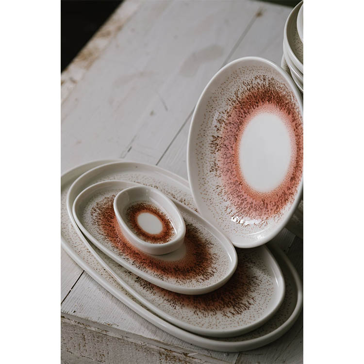The slightly deep design of the Sol Oval Deep Plate in 25 cm is ideal for serving large mains to share, such as roasted meats, fish dishes or composed presentations. Its elongated shape allows for elegant plating while maintaining a sophisticated visual appeal on the table.