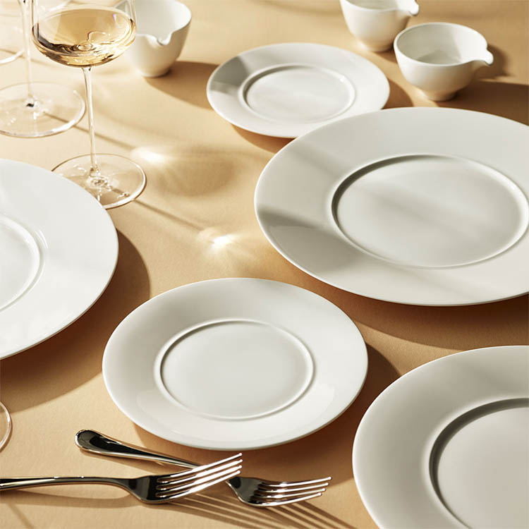The Signature Collection by Rene Ozorio is an exploration of shapes and material aimed at creating purity in lines and light. The nature of Fine Bone China offers a translucency that adds a special dimension to tableware. At the same time, it explores tableware in a sculptural way, invoking modernist architecture as can be seen in the lightness of each piece. Desginer Rene Ozorio says he was inspired by the works of the Italian Master Gio Ponti whose architecture, furniture and tableware have a purity that made his work timeless. His decorative designs, forms and colors were and still are an exercise in modern living.