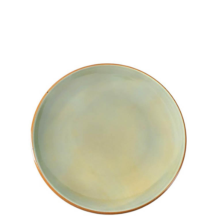 Serve small plates, desserts or appetizers with rustic elegance using the Oliva Coupe Plate. Its 15 cm diameter is perfect for versatile table presentations. The olive-green tones and terracotta-edged rim add a warm natural aesthetic to any dining setting.