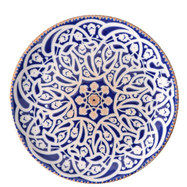 Intricate motifs and cobalt blue detailing draw inspiration from traditional tile art, adding cultural depth and refined elegance to food presentation.