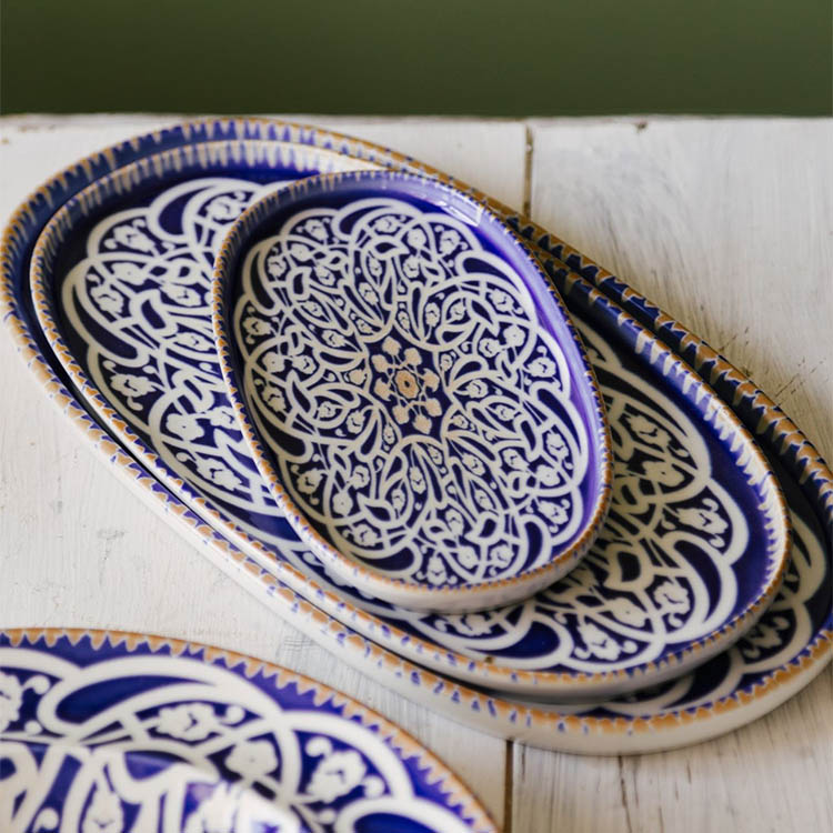 The Oriental Collection is a contemporary reinterpretation of traditional Turkish handcrafted tile art. Inspired by age-old motifs, flowing forms and rich colour traditions, each piece reflects the artistry of the East while seamlessly blending heritage with modern design. The timeless magic of cobalt blue tones brings depth, character and storytelling to every table.