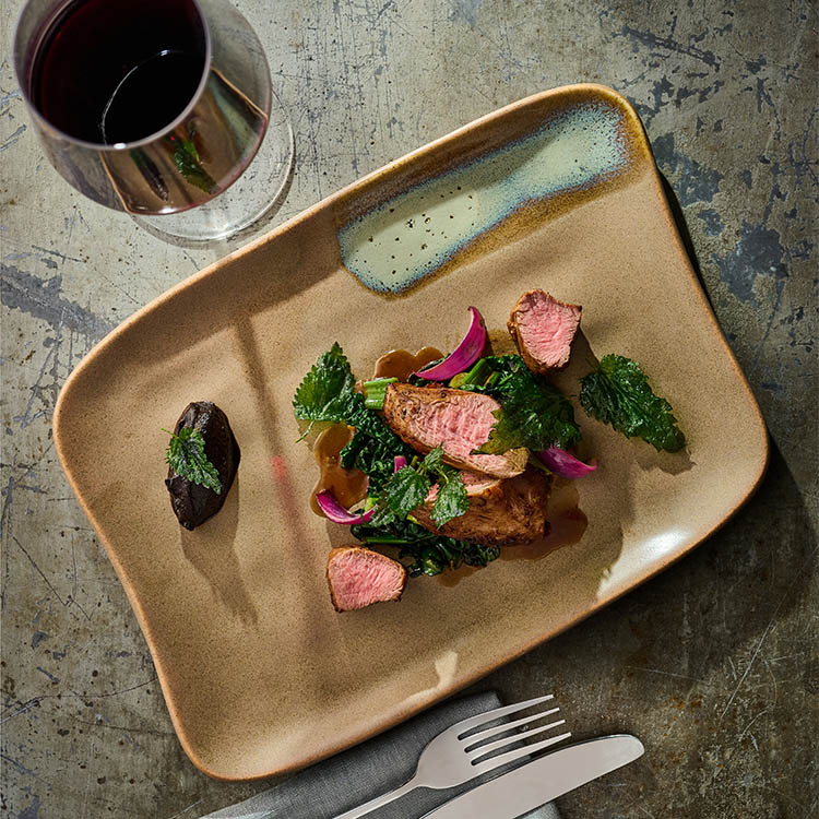 Coastal displays depth through distinctive reactive glaze effects, delivering visual interest across each piece. Designed to enhance a wide range of cuisines, it offers a textured and versatile base for all plating styles. Dishwasher safe, Microwave safe.