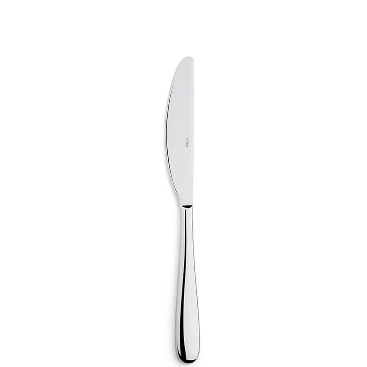 The Leila Dessert Knife is finished in Stainless Steel and polished to a smooth mirror finish. Leila is a well-balanced, simple yet stylish range which is comfortable to hold.