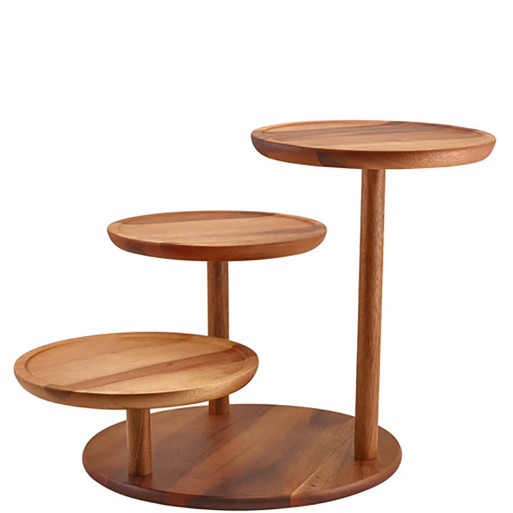 Acacia Wood 3 Tier Platform Riser 50 x 50 x 37.5cm (L x W x H) - Platform Size: 25cm (Dia)