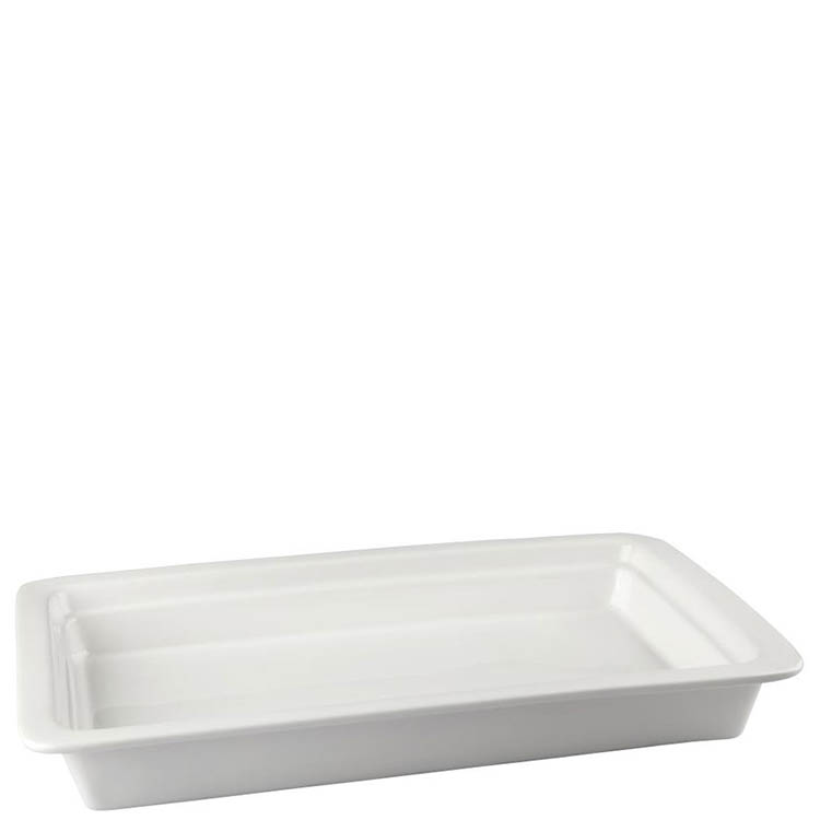 Premium white vitrified porcelain GN 1/1 pan designed for chafers, with full catering durability and versatility.