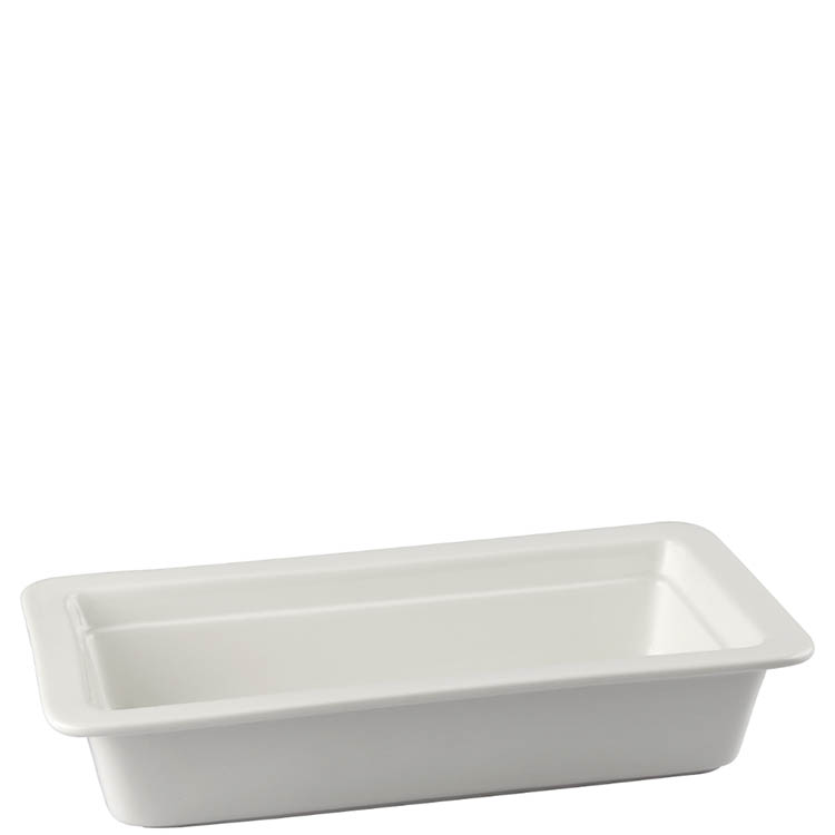 Premium white vitrified porcelain GN 1/3 pan designed for chafers, with full catering durability and versatility.