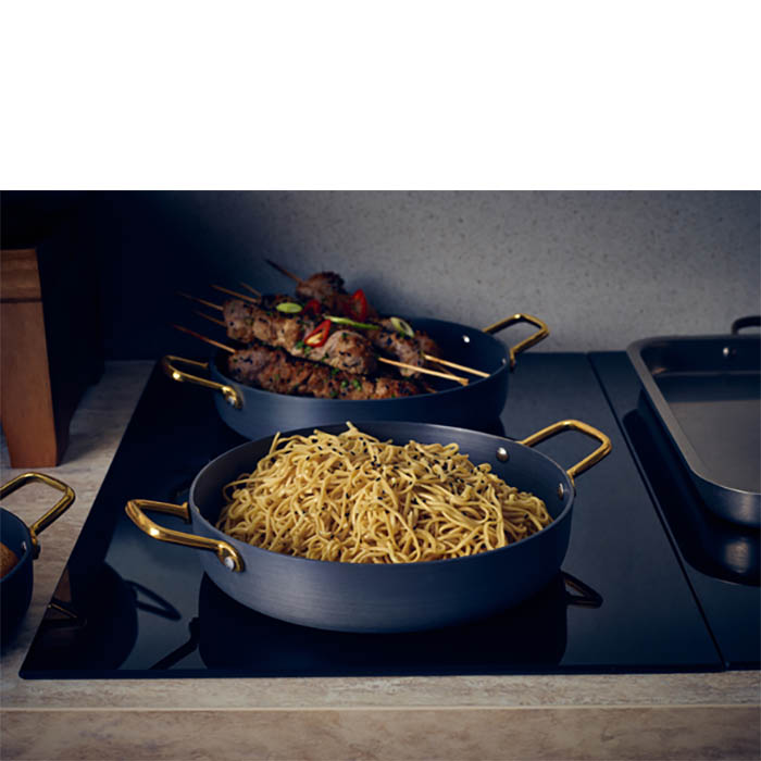 Perfect for showcasing larger dishes, sides, or desserts, our Aluminium Cookware range combines functionality with elegance. The attractive brass handles add a sophisticated touch, elevating casual dining to a premium experience. Crafted from durable hard anodised aluminium with a sleek brushed finish, these pieces beautifully complement Ceramic and Wooden Serving Boards, creating an exceptional presentation that enhances the overall dining experience.