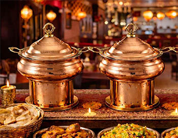 Serve Indian cuisine in a beautiful Copper, Brass, Steel or black iron dishes to give it that authentic look when presenting on a table. Choose from kadai’s, handi’s or Thalis and much more in various finishes from hammered to beaded to give Indian food a stunning presentation.