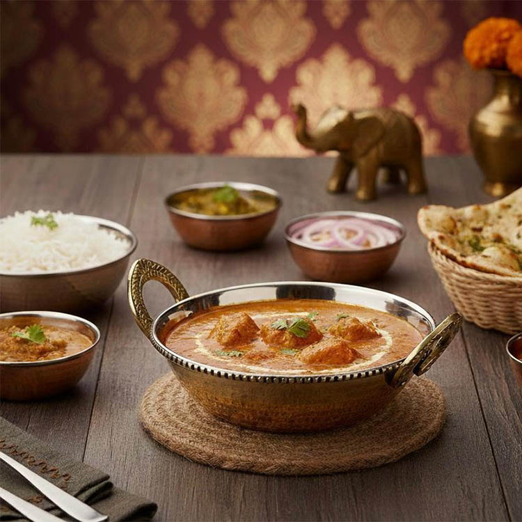 Crafted in brass-plated steel, this shapely serving balti kadai makes a stunning addition to the restaurant table. It's hammered exterior catches and reflects light, whilst the bowl's beaded lip and steel interior provides rich visual contrast. Hand-hammered. Hand wash only with soft sponge. Hand wash only with soft sponge.