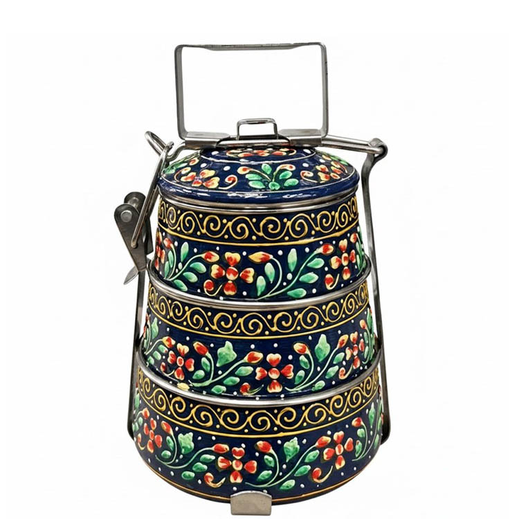 Colour Stainless Steel 3 tier Pyramid tiffin.