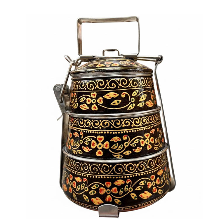 Colour Stainless Steel 3 tier Pyramid tiffin.