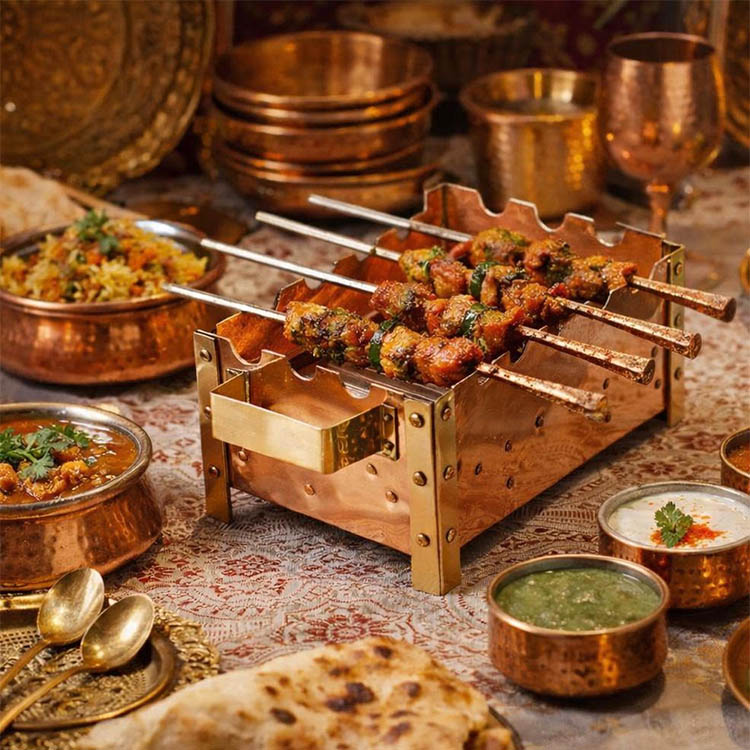 Elevate your grilled specialties from "served" to "spectacular." Our 26cm Copper Mini Barbeque Set is the ultimate vessel for theatrical table-side presentation. Designed to replicate the authentic feel of a live charcoal grill, this set allows you to serve tandoori meats, kebabs, and charred vegetables while they are still sizzling, capturing the peak of their flavor and aroma.