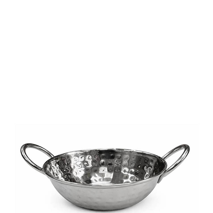 Perfectly sized for individual portions, side dishes, or appetizers, this Kadai (also known as a Karahi) is a staple for serving classic Indian dishes like Lamb Rogan Josh, Paneer Tikka, or Daal. Its signature hammered finish doesn’t just look beautiful under restaurant lighting—it also adds structural durability and helps hide the signs of daily wear in a busy hospitality environment.