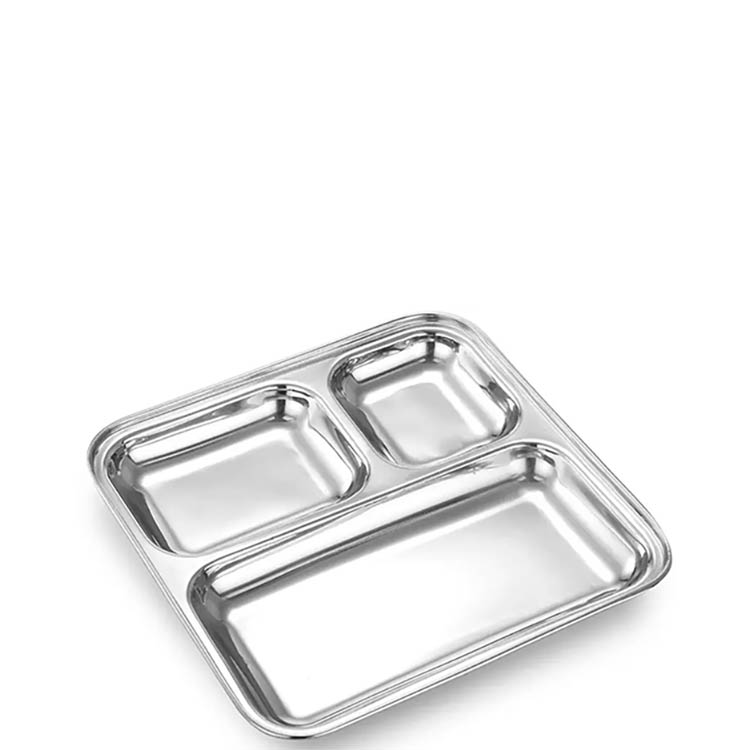 Stainless Steel Square mini 3 compartment Thali 25cm