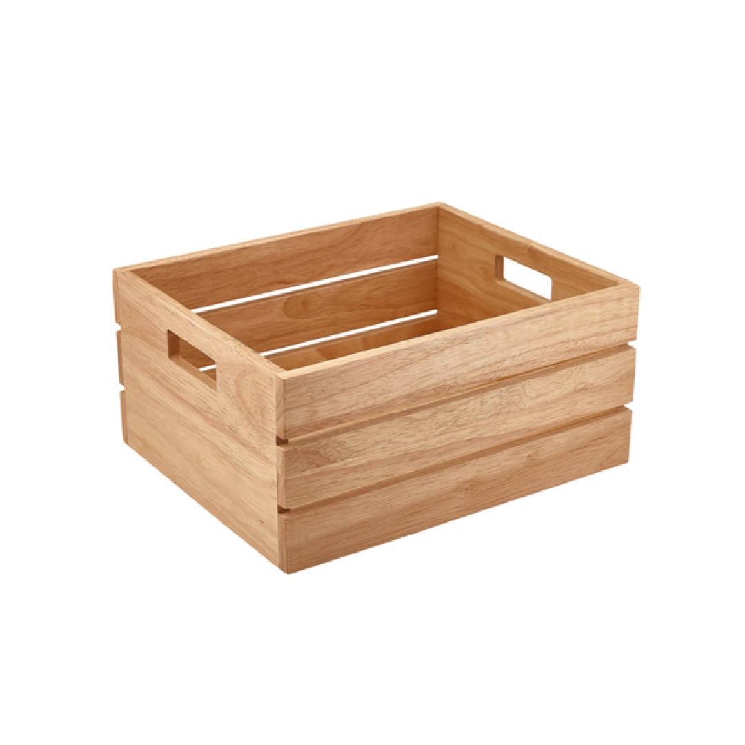 The GenWare Hevea Wood GN Crates combine natural aesthetics with functional design, making it a versatile addition to any buffet or countertop display. With its GN footprint, it integrates seamlessly with other Gastronorm compatible items, offering a cohesive and professional look. Whether used as a box for holding items or flipped over as a riser to elevate presentation, this dual purpose piece is ideal for showcasing everything from pastries and plated dishes to condiments and cutlery.