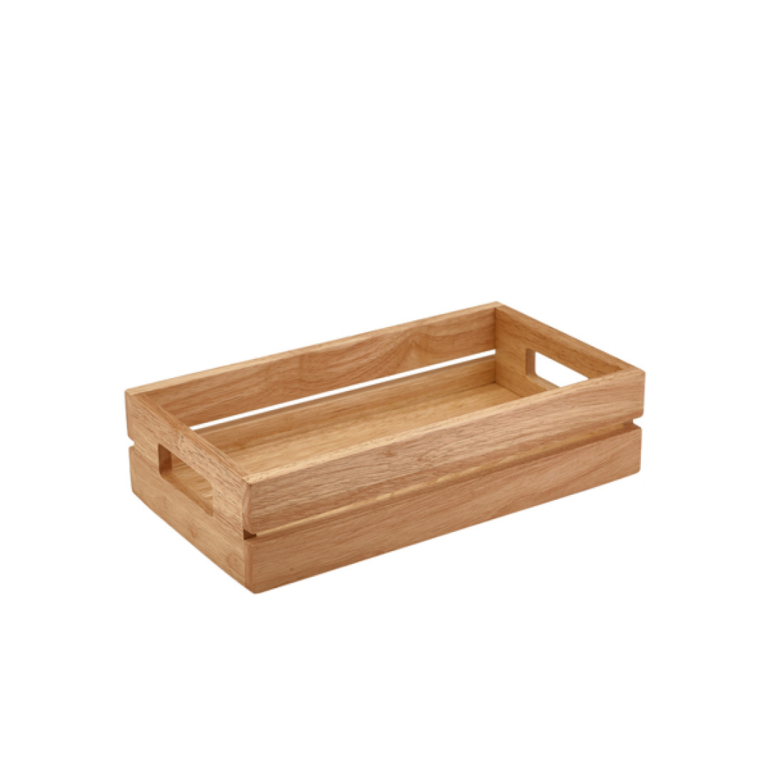 The GenWare Hevea Wood GN Crates combine natural aesthetics with functional design, making it a versatile addition to any buffet or countertop display. With its GN footprint, it integrates seamlessly with other Gastronorm compatible items, offering a cohesive and professional look. Whether used as a box for holding items or flipped over as a riser to elevate presentation, this dual purpose piece is ideal for showcasing everything from pastries and plated dishes to condiments and cutlery.