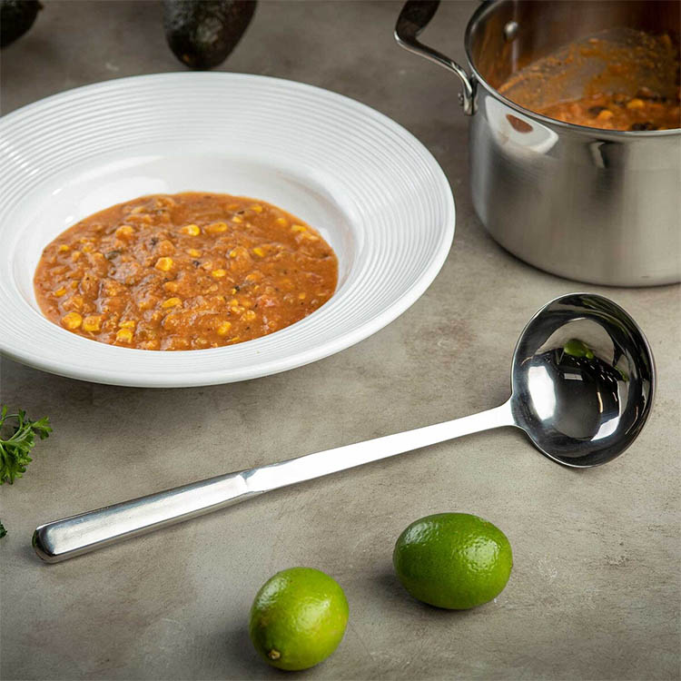 The Holden Collection™ Ladle is thoughtfully designed for ideal balance, weight, and control—making it a go-to tool for smooth, precise service. Whether you’re portioning soups, stews, sauces, or gravies, the ergonomic handle offers comfort during extended use. Durable and dishwasher safe, this ladle is built to perform in fast-paced kitchens, buffets, catering lines, or self-serve stations while minimizing cleanup time.