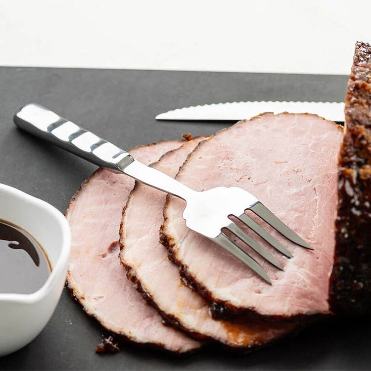 Serve with precision and style using the Holden Collection™ 4-Tine Serving Fork -- crafted for versatile foodservice use. With its wide-set, sturdy tines, this fork is ideal for lifting and serving larger cuts of meat, grilled vegetables, sliced fruit, or composed salads. The ergonomic, hollow handle offers a comfortable grip during busy service, while the stainless steel construction ensures lasting durability. Dishwasher safe and built for buffet lines, carving stations, and catering setups alike.