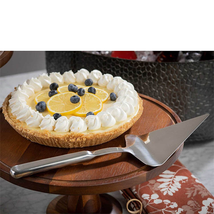 Deliver clean slices and smooth service with the Holden Collection™ Pie Server. Designed with a pointed, slightly flexible blade and ergonomic handle, this tool makes it easy to lift and serve everything from flaky pies and quiches to cheesecakes and tarts. Its stainless steel construction ensures long-lasting durability and is dishwasher safe for quick cleanup—ideal for bakeries, cafés, dessert buffets, and catering displays.