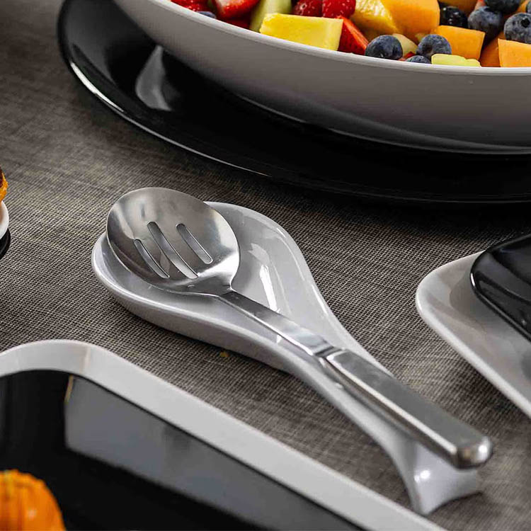The Holden Collection™ Slotted Spoon is built for balance, comfort, and performance in fast-paced foodservice environments. Its ergonomic design provides a secure grip and precise control, making it ideal for straining and serving vegetables, poached items, or marinated dishes. Durable and dishwasher safe, it’s a versatile tool for buffet lines, catering events, or kitchen prep where clean, efficient service matters.