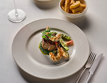 Discover the art of texture with our new Embossed collection. Designed for fine dining and banqueting establishments, this new range redefines presentation with subtle digitally printed textures which bring dimension and character to every dish. With five distinct designs: Prism, Quartz, Organic, Contour and Orbit, each series showcase signature pieces offering a textured elegant approach to dining.