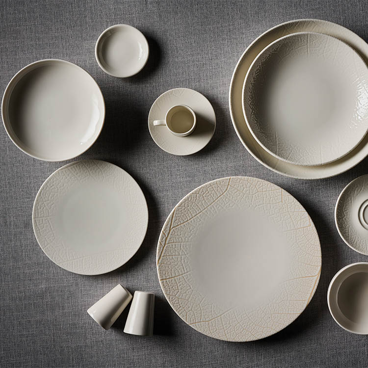 Bringing the beauty of nature to the table, Organic features a soft, nature-inspired motif that seamlessly flows across each piece. This design creates an impactful visual aspect to dining.