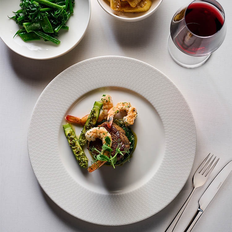 Drawing inspiration from the complex brilliance of cut stone, Quartz showcases a delicate diamond lattice embossment across its signature pieces, offering understated glamour to the table.